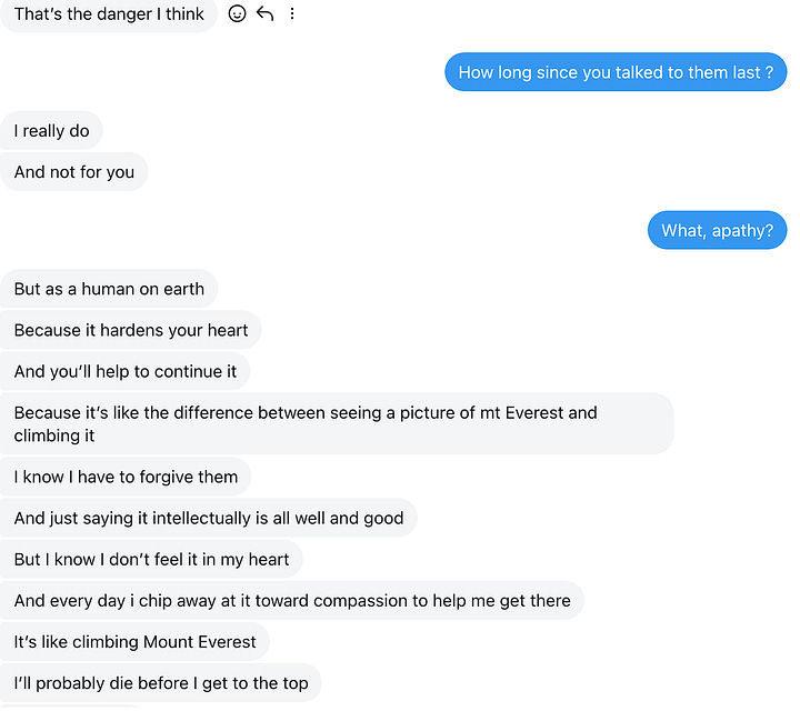 even amidst "the violence, the division, the obsession with power and destruction," we all need reminders of the good, even (or especially) the complexities of being human; maybe we need to hold onto the truly good people in our lives just a little tighter, even for just a second.